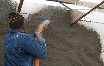 For plastering the ceilings and other concrete surface : In order to avoid the damage of concrete due to hacking process for plastering, apply Bonding Key Coat by Tyrolean Box or spray gun to a thickness of 2-3 mm as a texture in order to achieve the mechanical key for plastering on smooth surface of concrete. Key coat must be cured with potable water 3-4 times a day for at least two days before the application of plaster on it. On such prepared surface of concrete, premixed plaster- Dicofix 150 can be applied in thickness of 10-20 mm in single coat.