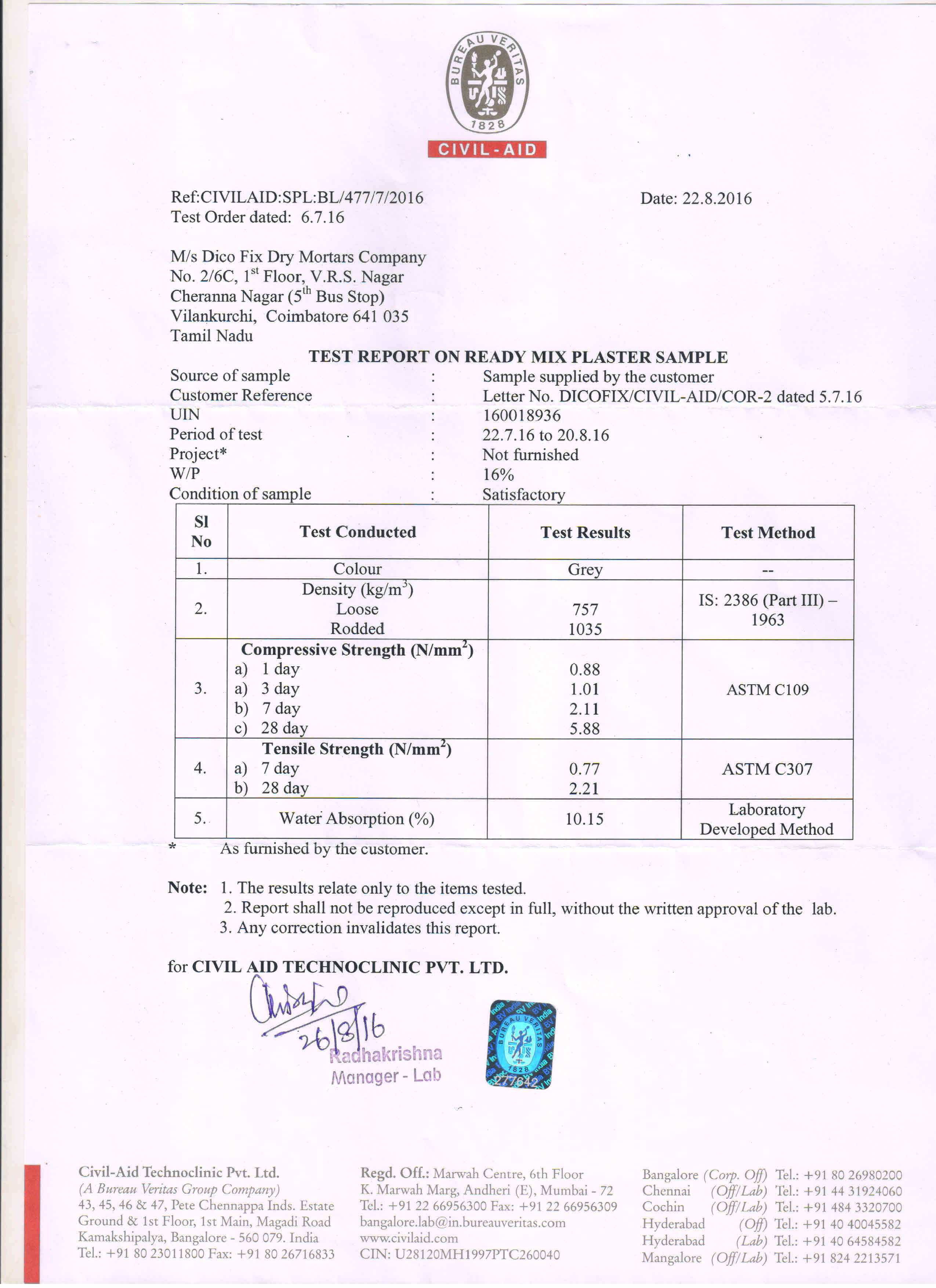 Dry mix plaster Dicofix- 150 contains Portland cement, which after mixing with water becomes strongly alkaline and may cause skin irritation if exposed to such conditions for a long time. Avoid inhalation of dust and in case of contact with eyes and skin, wash with plenty of clean water and take medical help if required. Work in well – ventilated condition and use protective kits such as mask, gloves and spectacles. Keep the materials out of the reach of children.